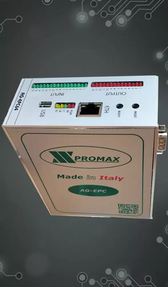AG-EPC 64 es la nueva generación de CNC de gama alta de Promax. Las prestaciones son ideales para máquinas profesionales de alto nivel. El tipo de ejes controlados permite una amplia elección de motores, con la posibilidad de poder utilizar soluciones mixtas. Para ello utiliza ISOUS para la aplicación GCODE PC. La CPU integra 1 ETHERNET, 1 ETHERCAT CoE, 2 puertos serie RS232 (1 – 485), 2 CanOpen, 8 entradas analógicas de 12 Bit. Con las expansiones adecuadas puede integrar hasta 128 entradas digitales, 114 salidas, 8 salidas analógicas y 8 canales de encoder de 1 MHz. La conexión al PC es mediante ETHERNET hasta 100 Mb. No hay límite de memoria en lo que respecta al Programa ya que este utiliza la RAM del PC.