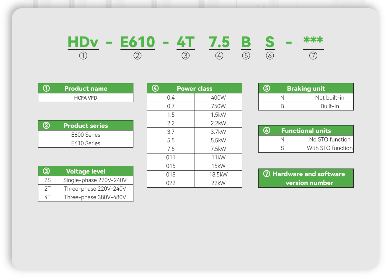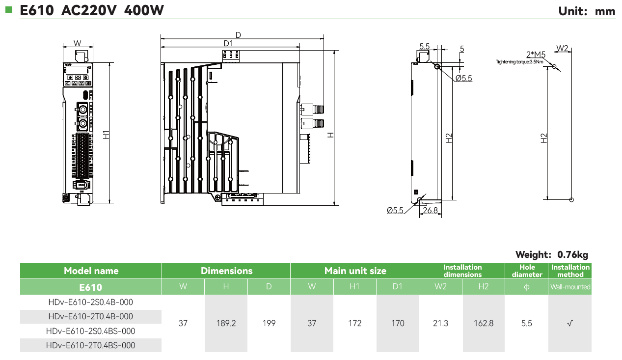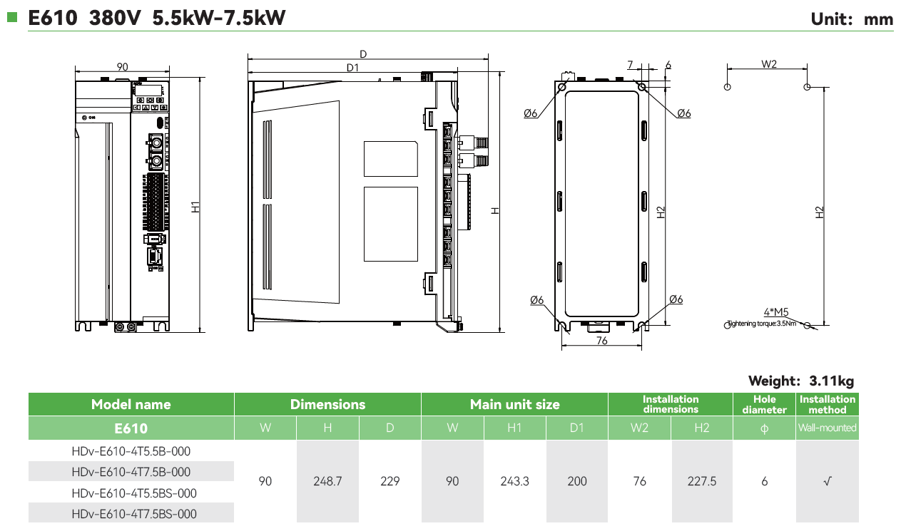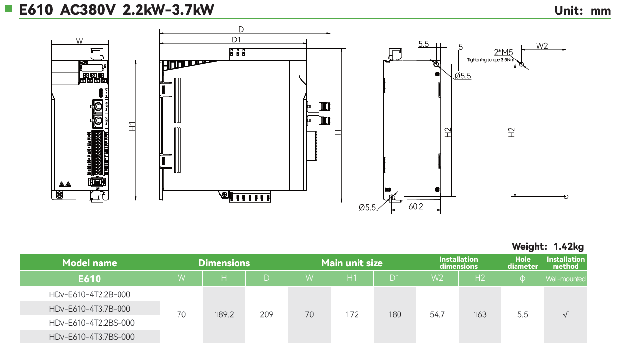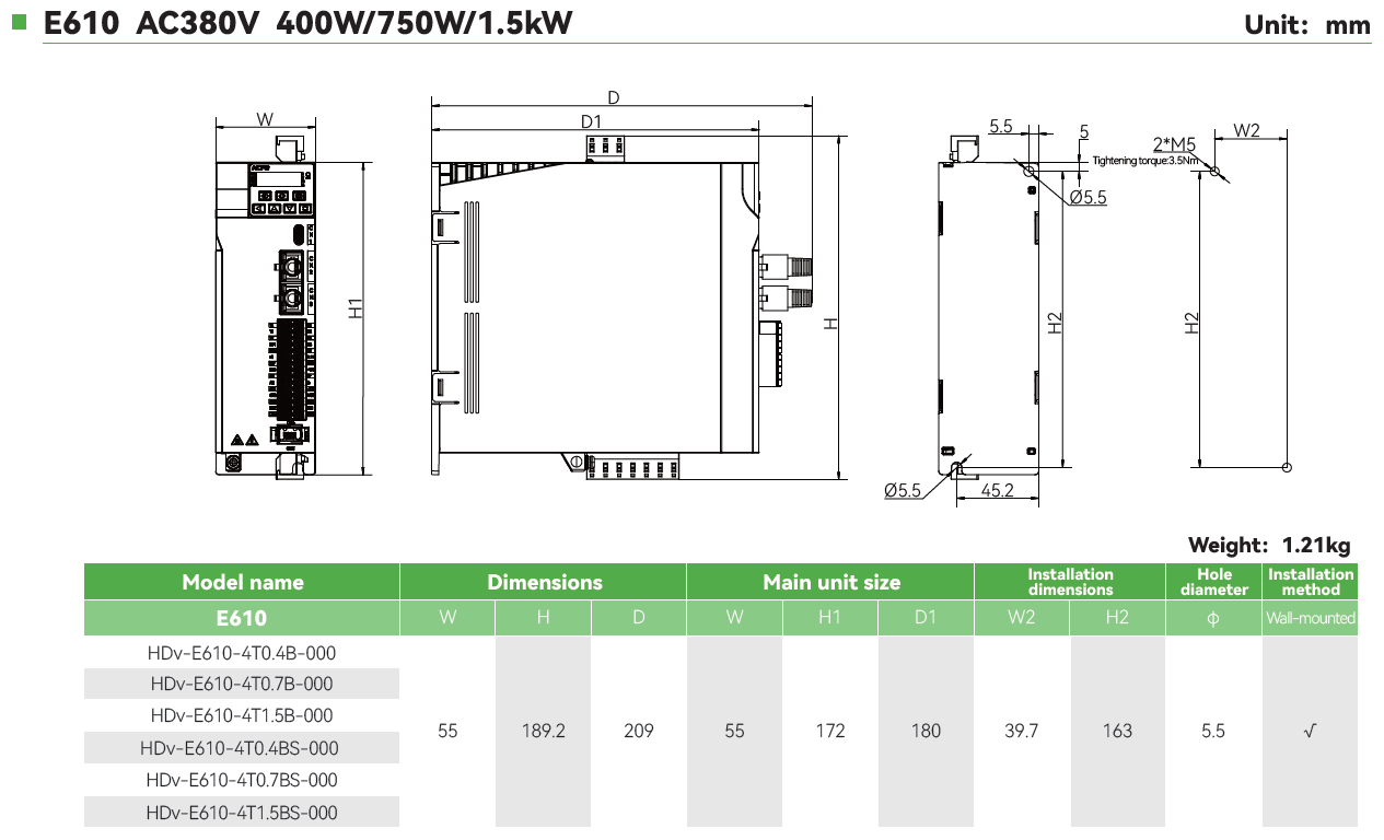 • Rango de Potencias: 0.4KW-2.2KW(Trifásica 220V), 0.4KW-22KW(Trifásica 380V)