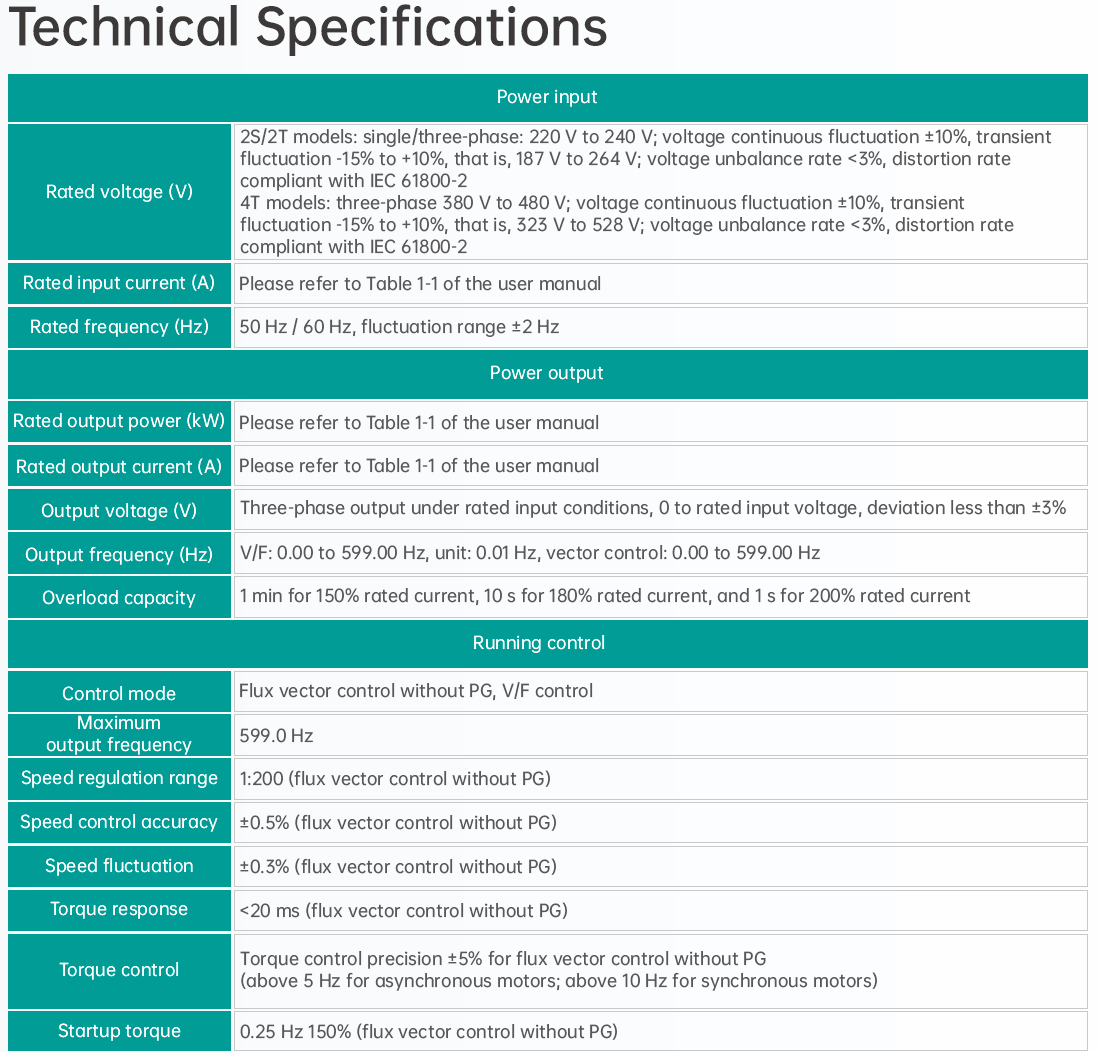Rango de Potencias: 0.4KW-2.2KW(Monofásica 220V), 0.4KW-5.5KW(Trifásica 380V)
