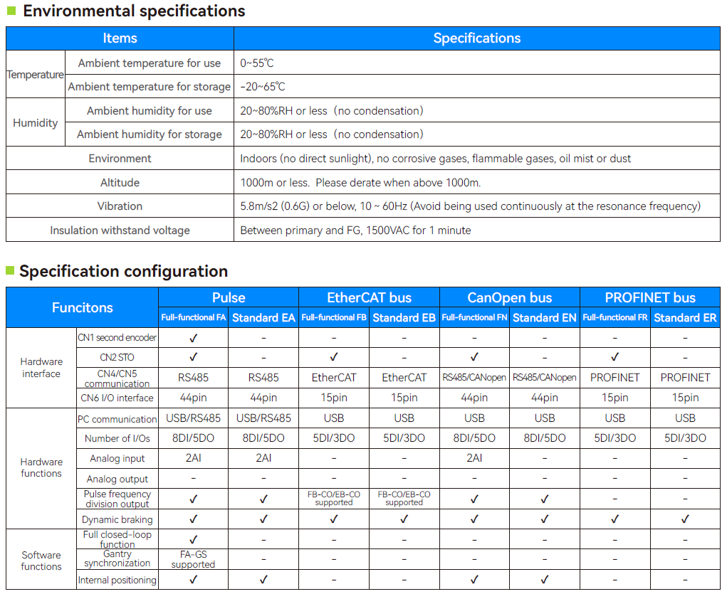 - Protocolos Soportados: A-Pulsos, B-Bus EtherCAT, N-Bus CANOpen, R-Bus PROFINET