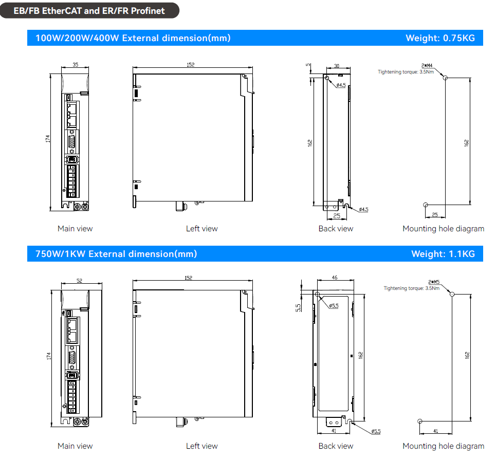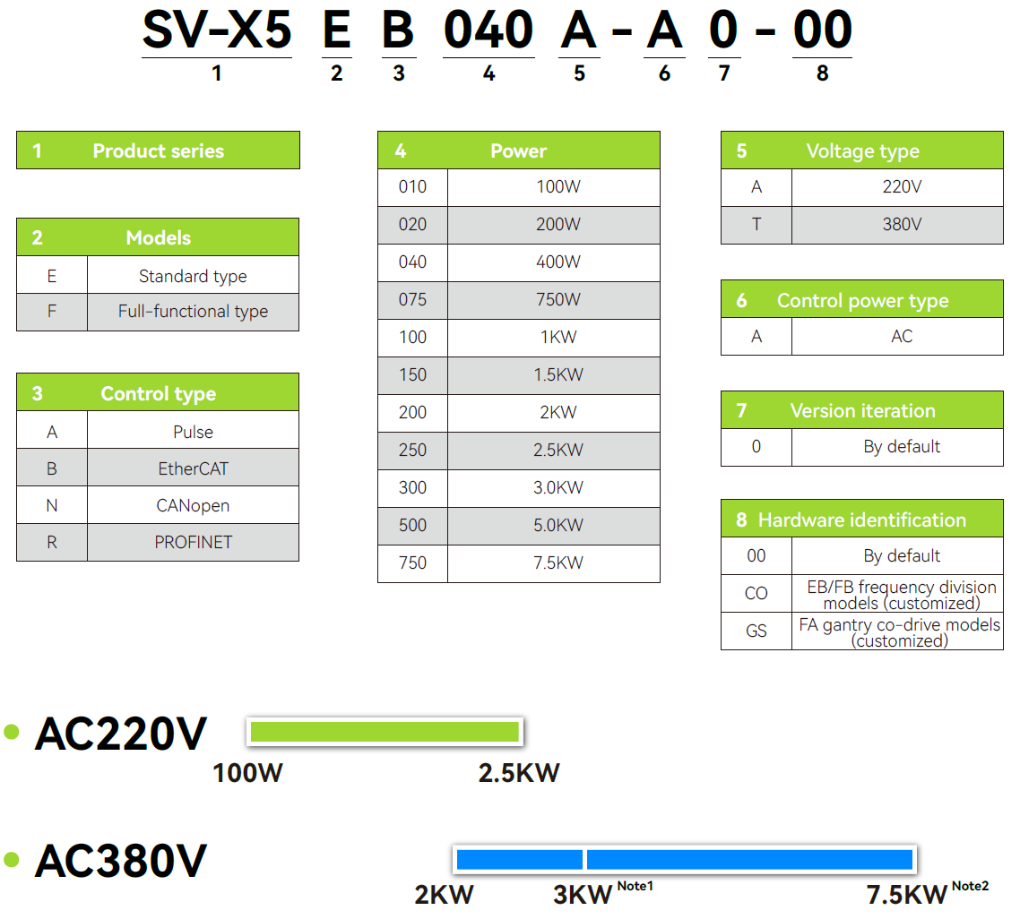 - 220V: 100W-1kW, Alimentación AC Mono/Trifásica 220V
